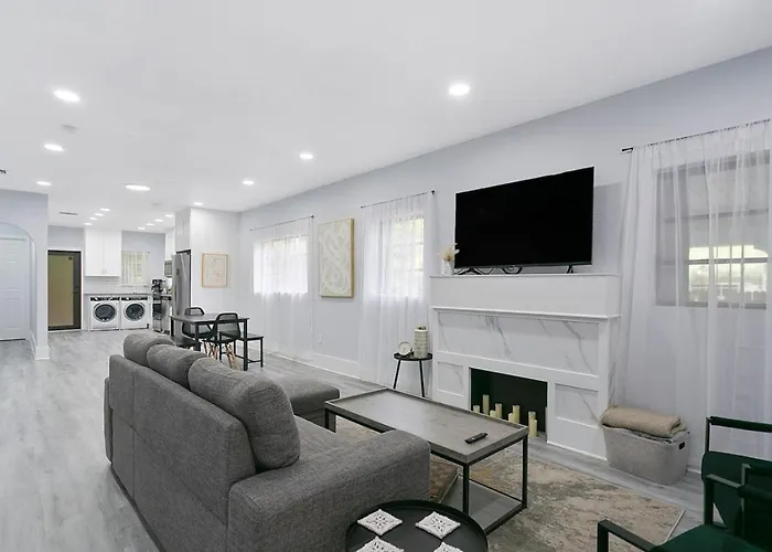 La Center Miami Designer Home 3 Bedroom Sleeps 9 dispone di una cucina completamente attrezzata con una lavastoviglie, una macchina per caffè e tè e utensili da cucina. Gli ospiti hanno la possibilità di cenare presso il ristorante Porto Alegre Brazilian Grill & Bar, a circa 5 minuti in auto. La villa dista 5 km dall'aeroporto Internazionale di Miami.